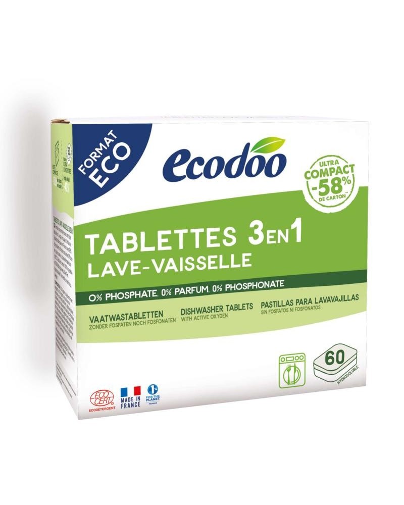 Ecodoo 3-in-1 vaatwastabletten met actieve zuurstof.Ecocert gecertificeerd.