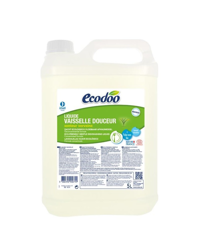 Ecodoo zacht vloeibaar afwasmiddel verbena. Reinigt, ontvet en laat de vaat glanzen. Met biologische aloë vera voor zachte handen en de geur van verbena. Bevat geen kleurstoffen of synthetische conserveringsmiddelen, geëthoxyleerde oppervlakteactieve stoffen en dierlijke materialen. Niet getest op dieren.