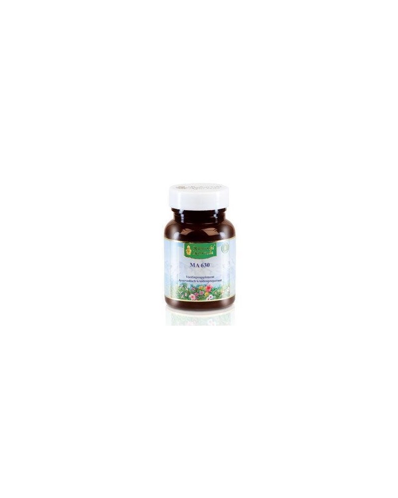 Aqueous extract from Swertia chirata 111.8 mg, Terminalia chebula (Haritaki) 52 mg, Terminalia belerica (Bibhitak) 51 mg, Emblica officinalis (Amalaki) 45 mg, Inula racemosa 42 mg, Piper longum (Pippali) 41 mg, Marsdenia tenacissima 30 mg, Coating: hydroxypropylmethylcellulose, Aqueous extract from: Waterig extract uit Picrorhiza kurroa 28 mg, Viola odorata 27 mg, Valeriana wallichii 25 mg, Nelumbium speciosum (Lotus) 25 mg, Moringa oleifera (Moringa) 23 mg, Chaerophyllum reflexum 23 mg, Holarrhena antidysenterica 22 mg, Glycyrrhiza glabra (zoethout/licorice) 20 mg, Pongamia pinnata 20 mg, Abies webbiana 19 mg, Trachyspermum ammi 17 mg, Firming agent: rice starch/rijstzetmeel, Aqueous extract from: Solanum nigrum 17 mg, Withania somnifera (Ashwagandha) 16 mg, Fumaria indica 15 mg, Zingiber officinale (ginger/gember) 14 mg, Pavonia odorata 14 mg, Tinospora cordifolia (Guduchi) 14 mg, Trichosanthes dioica 14 mg, Uraria picta 13 mg, Cinnamomum tamala 12 mg, Curcuma zedoaria 10 mg, Alhagi camelorum (Camel thorn) 10 mg, Andrographis paniculata 10 mg, Holarrhena antidysenterica 10 mg, Plumbago zeylanica 10 mg, Syzygium aromaticum (clove/kruidnagel) 9 mg, Piper chaba (turmeric/geelwortel) 9 mg, Piper longum (Pippali) 9 mg, Solanum indicum 8 mg, Piper nigrum (black pepper/zwarte peper) 8 mg, Cyperus scariosus 8 mg, Myristica fragrans (nutmeg/nootmuskaat) 7 mg, Vetiveria zizanioides (vetiver) 7 mg, Mesua ferrea (nag champa) 6 mg, Embelia ribes (butterfly pea) 6 mg, Elettaria cardamomum (green cardamom/groene kardemom) 5 mg, Cinnamomum zeylanicum (Ceylon cinnamon/Ceylon-zimt) 5 mg, Alnus nepalensis 5 mg, Aluanspat natuurlijk alumina 5 mg, Azadirachta indica (Neem) 4 mg, Bambusa arundinacea (Bamboo mastiq) 5 mg, Cedrus deodara 2 mg, Santalum album (white sandalwood/wit sandelhout) 3 mg.