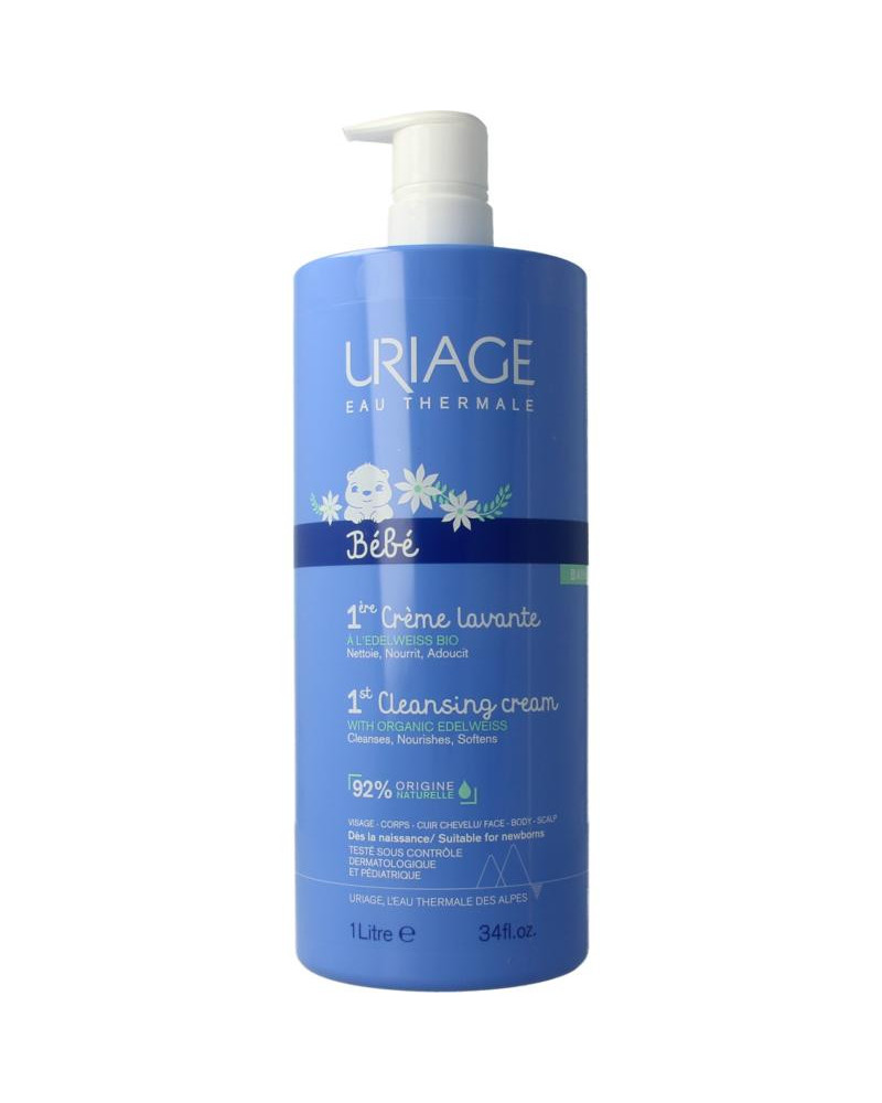 Deze rijke, romige wascrème reinigt baby’s huidje met zachtheid en beschermt de hydrolipidenfilm. De formule met een natuurlijk complex [Thermaal Water van Uriage + Bio Edelweiss] en karitéboter werkt hydraterend.
