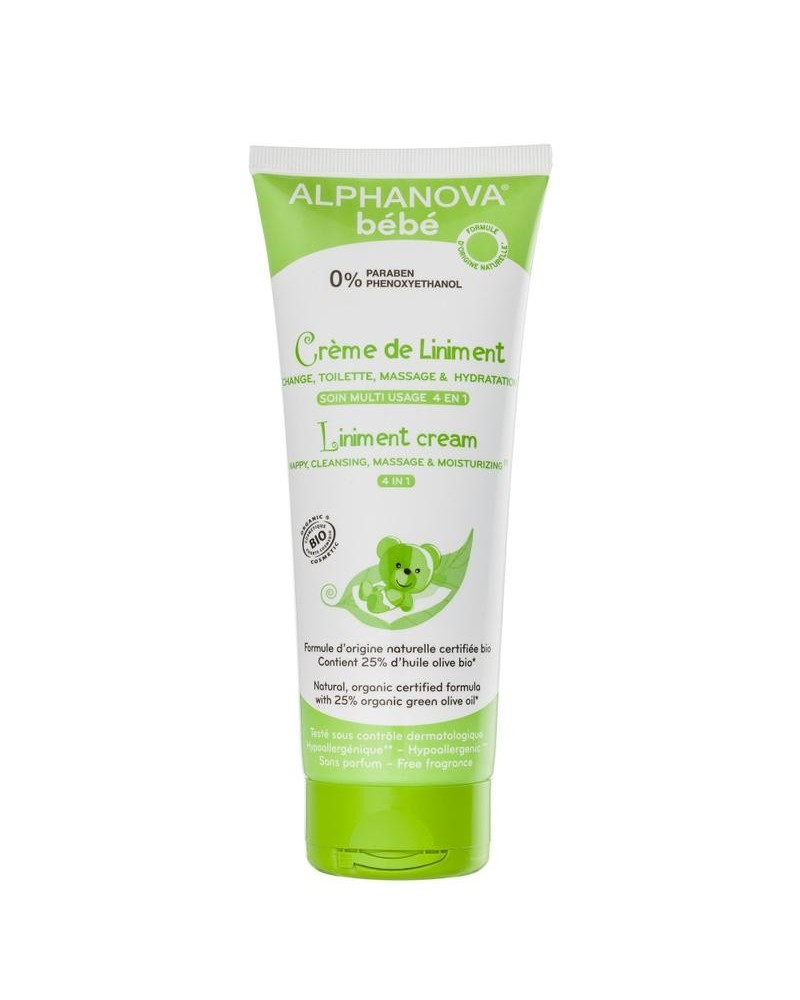Biologische Baby Liniment Cream 4 in 1 van Alphanova is een hypo-allergene multi-functionele creme voor baby’s.