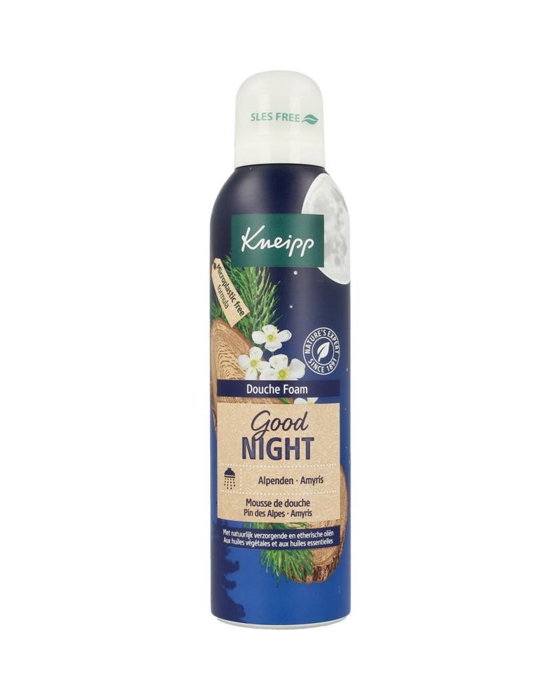 Verwen jezelf met de rijk schuimende Kneipp® douche foam Good Night en bereid jezelf voor op een goede nachtrust. Ervaar de zachte, warme houtachtige geur, met essentiële olie van alpenden en amyris, die voor ontspanning zorgt. Deze douche foam is gedreven op perslucht. Geniet van de zachte verzorgende streling van het schuim. Tip: Probeer ook de Kneipp Regenerating Huidolie Good Night als extra aanvulling op dit fijne Good Night avondritueel.