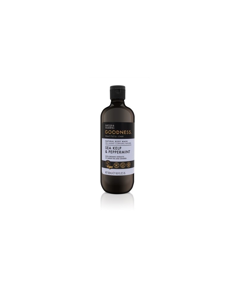 Baylis & Harding Goodness Body Wash Sea Kelp & Peppermint is een douchegel met de verfrissende en zuivere geur van pepermunt. De geur van zeewier en pepermunt is schoon en rustgevend; een prachtige samensmelting van de zee die de Engelse tuin ontmoet. Verfrissende topnoten van pepermunt, groene thee en zeezout, gecombineerd met zeewier en diepe ondertonen van cederhout en amber. Verrijkt met biologisch extracten van groene thee en steranijs, en pepermuntolie maken van het douchen een moment om van te genieten.