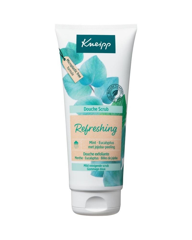 Verwen jezelf met de Kneipp® douche scrub Refreshing Mint-Eucalytus, een combinatie van verzorgende douchegel met een mild reinigende scrub. Je voelt je verfrist door de geur van mint en eucalyptus. De milde scrub met jojoba-peeling verwijdert voorzichtig dode huidcellen waardoor de huid glad en zacht blijft aanvoelen. Geschikt voor dagelijks gebruik.