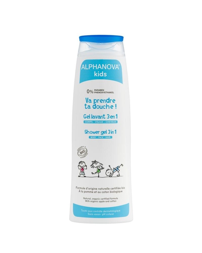 De Alphanova Kids Bio Shower Gel 3-in-1 is speciaal ontwikkeld voor de gevoelige huid van kinderen. Deze veelzijdige douchegel biedt een zachte reiniging voor gezicht, haar en lichaam. Verrijkt met biologische ingrediënten zoals aloë vera sap, kamille en zoete amandelolie, zorgt het voor een milde en hydraterende ervaring. De heerlijke zoete geur van vanille en abrikoos maakt het badderen tot een plezierige ervaring voor de kleintjes.