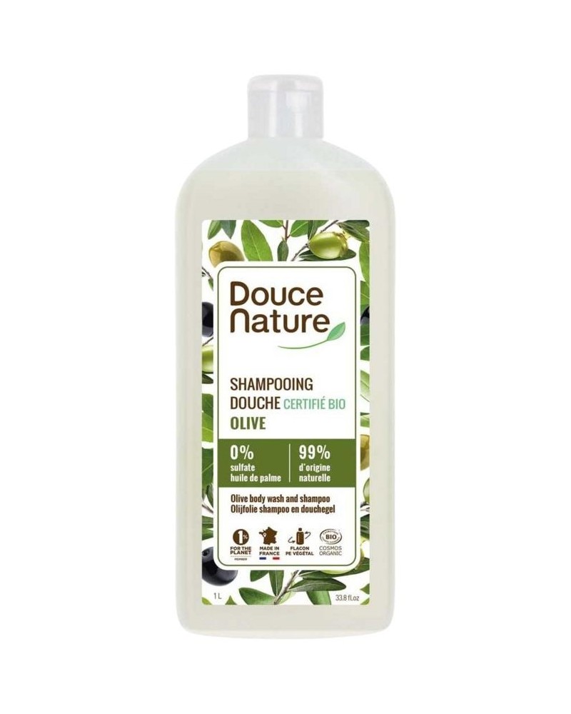 Douce Nature Douchegel & shampoo olijf is verrijkt met biologische olijfolie. Deze zachte, sulfaatvrije douchegel verwent en verzacht je huid. Vrij van palmolie, zeep en dierlijke ingrediënten en behoudt een gezonde fysiologische pH-waarde. De douchegel is dermatologisch getest. Geniet van een perfecte hydraterende en verzachtende douche-ervaring met de biologische douchegels van Douce Nature!