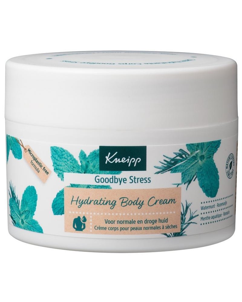 De hydraterende bodycrème Goodbye Stress van Kneipp bevat vitamine E, panthenol, sheaboter, sprankelende watermunt en stimulerende rozemarijnolie. Naast de hydraterende werking van deze crème zorgt de verkwikkende en verfrissende geur voor ‘ruimte’ in je hoofd*. Ideaal voor de dagelijkse verzorging van de normale huid en droge huid. Zet stress om in positieve energie met deze heerlijke vegan bodycrème.