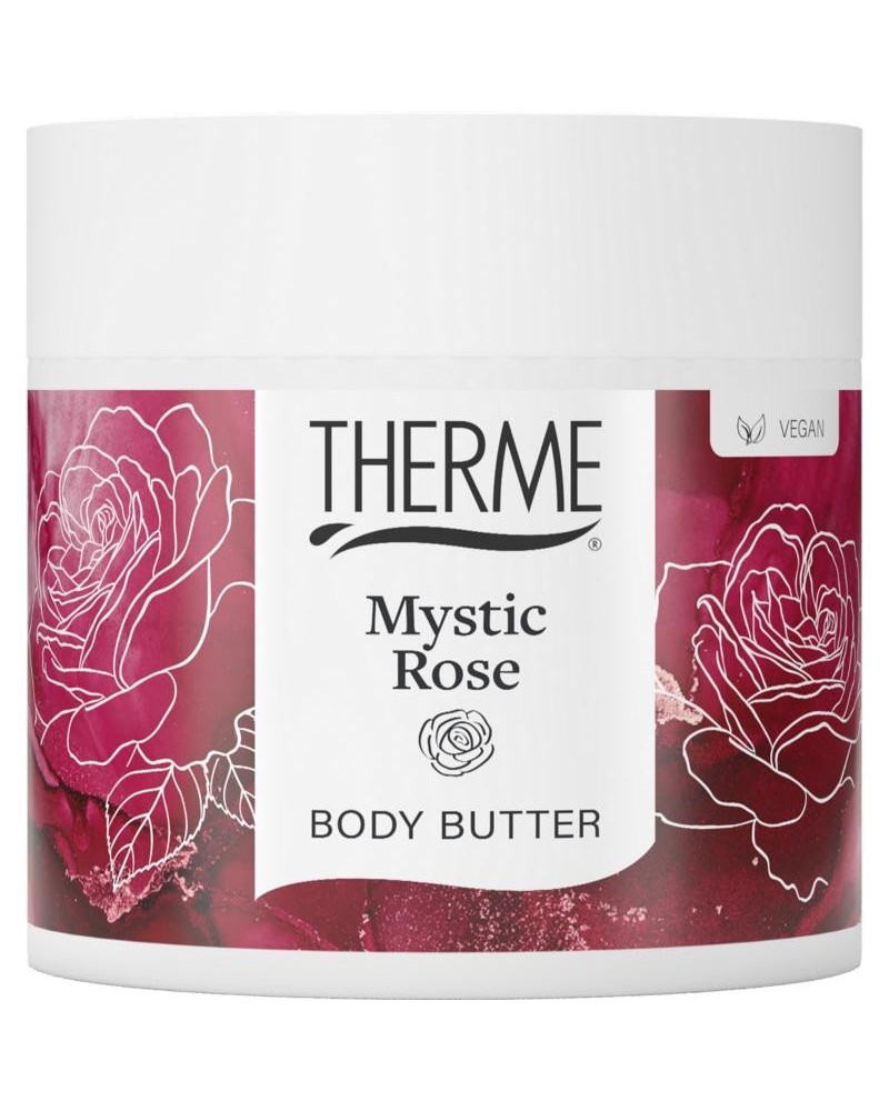 Therme Mystic Rose Body Butter is een rijk voedende crème die de huid intensief hydrateert. Het laat een verzorgend laagje achter en parfumeert het lichaam langdurig. Geniet van een zijdezacht huidgevoel en de rijke geur. Ontspan en prikkel je zintuigen met deze luxe wellness beleving.