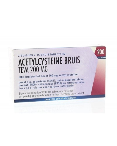 Verwijderen van verlanglijst Toevoegen aan verlanglijst Acetylcysteine 200mg Pijn algemeen Prijs € 9,20 Bestellen Acetylcysteïne bruis Teva 200 mg, bruistabletten