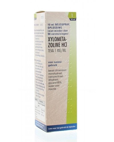 Verwijderen van verlanglijst Toevoegen aan verlanglijst Xylometazoline 1mg spray Neus/Inhalatie Prijs € 3,99 Bestellen Xylometazoline HCl Teva 1 mg/ml, neusspray, oplossing