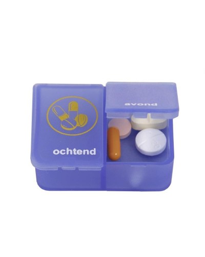 Verwijderen van verlanglijst Toevoegen aan verlanglijst Pillendoos 1 dag 2 vaks... Hulpmiddelen Prijs € 2,95 Bestellen De pillendoos voor 1 dag heeft vakjes voor verschillende tijdstippen op de dag, zoals ochtend, middag, avond en nacht.