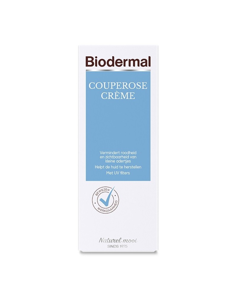 Couperose crème van Biodermal biedt een effectieve behandeling van huidproblemen zoals rosacea en couperose. De crème herstelt de huidbarrière en vormt een beschermende laag die ondersteuning biedt tegen invloeden van buitenaf. De couperose crème heeft een kalmerende werking op de rode huid en is niet vet.