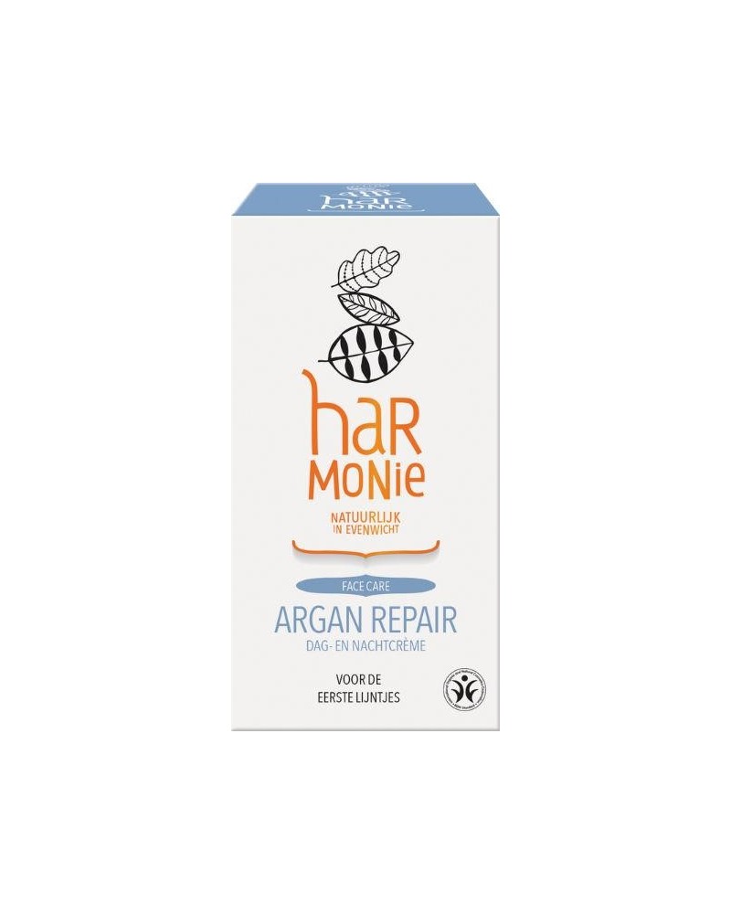 Argan repair dag- en nachtcreme is de meest veelzijdige, gecertificeerd natuurlijke dag- en nacht- verzorging van Harmonie. Kostbare oudgeperste biologische argan olie herstelt, voedt en hydrateert de huid intensief en geeft een zijdezachte verzorging. Zorgvuldig geselecteerde kruidenextracten, plantaardige- en etherische olien en vitamine E maken deze bijzondere samenstelling compleet. Voor een meest volwaardige dagelijkse verzorging van de huid die wel wat extra verzorging kan gebruiken.