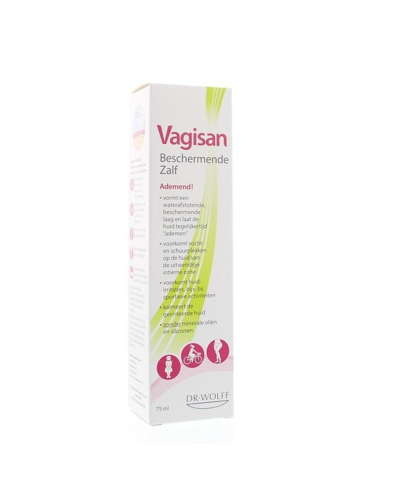 Vagisan Beschermende Zalf is speciaal ontwikkeld voor gebruik in de uitwendige intieme zone. De zalf is bijzonder mild, eenvoudig smeerbaar en hecht zich goed aan de huid. Dankzij de samenstelling met huidvriendelijke oliën en plantaardige was vormt het een waterafstotende beschermende film op de huid, maar laat de huid wel 'ademen'. Zo kan de huid worden beschermd tegen huid irriterende invloeden die pijnlijke plekken veroorzaken op de uitwendige intieme zone en bij de billen, zonder dat vocht zich ophoopt. Vagisan Beschermende Zalf bevat geen minerale oliën of siliconen.