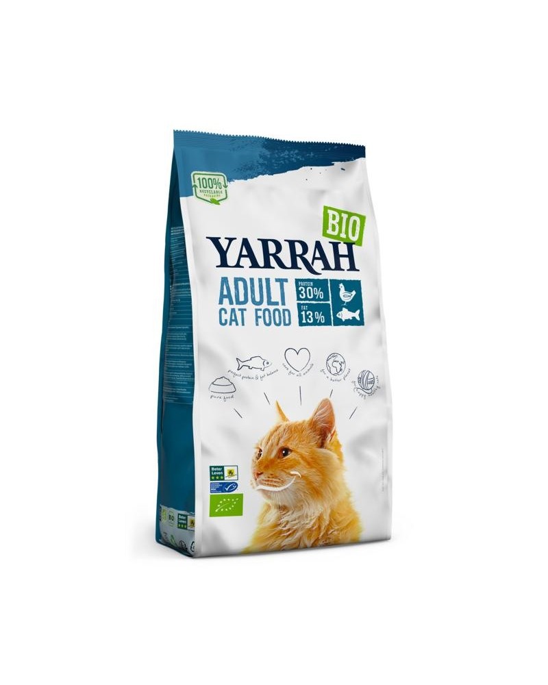 Krokante brokjes met MSC-haring, biologische kip, erwten en lupine, voor volwassen katten. Het biologische kattenvoer vormt een complete, voedzame en zeer smakelijke maaltijd voor je kat. Zuiver biologisch voer en dus vrij van chemische geur-, kleur- en smaakstoffen, pesticiden en GMO, waarbij de best opneembare eiwitten zijn geselecteerd. Zo krijgt je kat precies binnen wat hij nodig heeft.