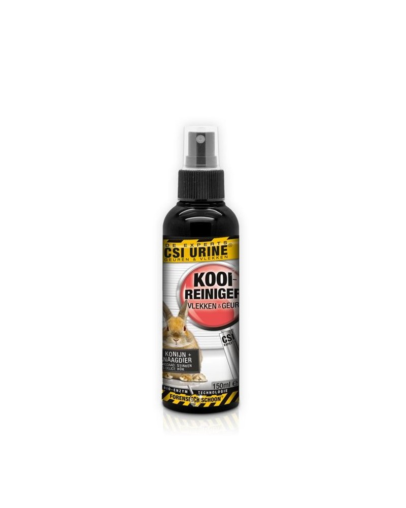 CSI URINE breekt konijnenurine (en andere organisch materiaal) op moleculair niveau af aan de hand van slimme enzymen en bacteriën. Deze spray helpt om viezigheid bij het schoonmaken los te weken. Een écht en langdurig schone kooi is het resultaat! CSI Urine is 100% gifvrij en is vrij van agressieve chemicaliën.