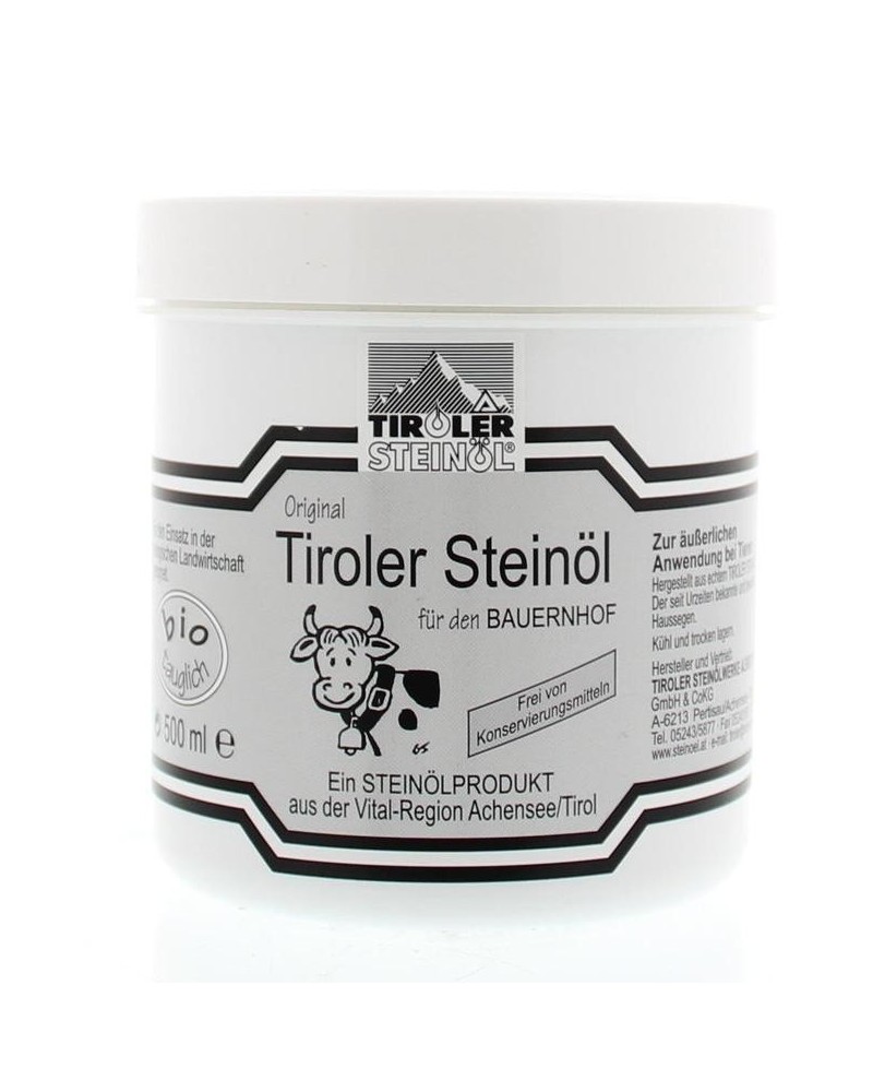 Het product voor dieren, Tiroler Steinöl für den Bauernhof, heeft een hoge concentratie Steenolie in water oplosbare vorm. In combinatie met een huidvriendelijke zalf is dit een uiterst effectieve behandeling gebleken. Door de samenstelling is het product geschikt bevonden voor biologisch gebruik. De praktische verpakking zorgt voor een zuinig gebruik. Het product is uitgebreid getest. De vele positieve reacties hebben ertoe geleid dat het product op de markt is gebracht.