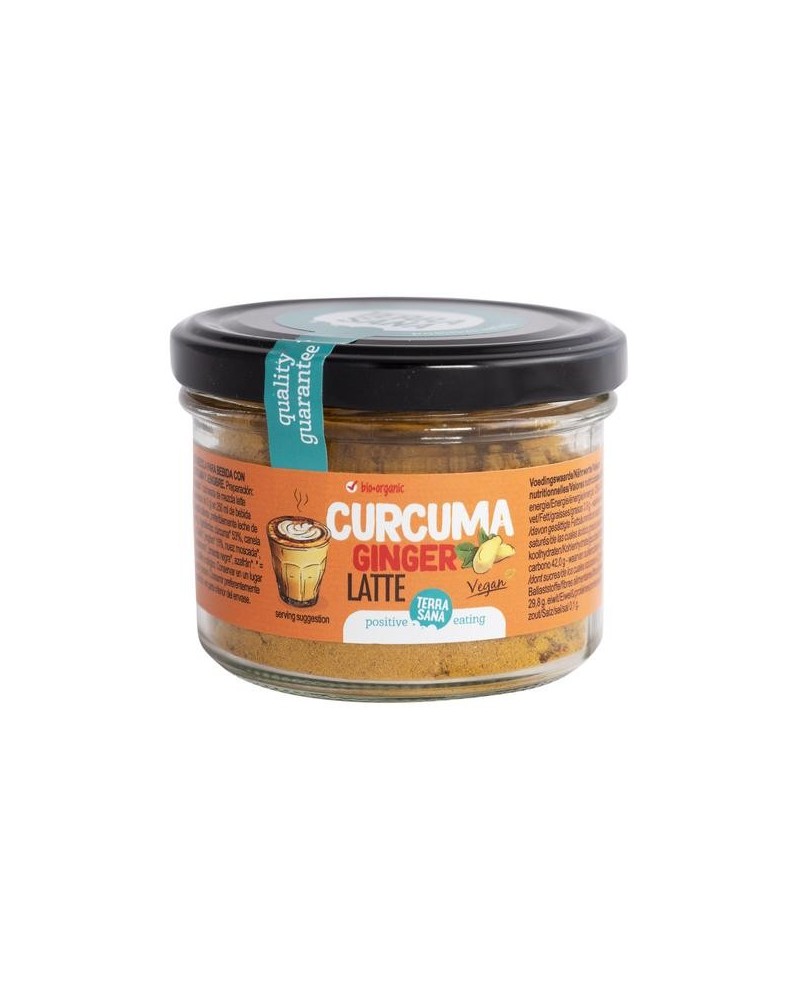 Met curcuma ginger latte kom je heerlijk op adem. Het is een zorgvuldig samengestelde mix van biologische kruiden en specerijen, waarvan maar liefst 53% kurkuma. Uitgesproken smaken zoals kaneel, kardemom en saffraan maken je latte wel heel bijzonder. Maak in een paar minuten heerlijke golden milk door 1 tl poeder te mengen met 250 ml (plantaardige) melk, bij voorkeur rijstdrank. Curcuma ginger latte is een goed alternatief voor koffie of thee, maar is ook lekker om ijs, baksels en hartige gerechten mee op smaak te brengen.