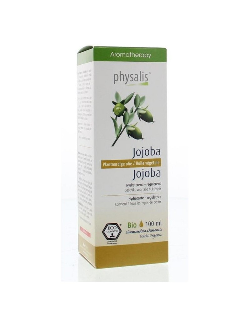 Physalis bio jojoba-olie is een lichtgele, dunne “olie” uit de zaden van de jojoba-struik, die groeit in woestijnachtige gebieden. Het is in feite een was die vloeibaar wordt boven 15°C met een uitzonderlijke samenstelling én uitstekende houdbaarheid. Jojoba-olie wordt zeer goed geabsorbeerd zonder een vette film achter te laten. Ze is geschikt voor alle huidtypes van jong tot oud, voor een droge tot vette huid, een gevoelige huid en huid met acné (verstopt de poriën niet). Maakt de huid gladder en heeft een hydraterende en regulerende werking.