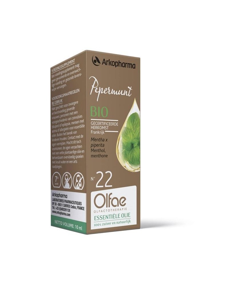100 % zuivere biologische essentiële olie van het bovengronds gedeelte van de Pepermunt (Mentha x piperita), Lamiaceae, herkomst Frankrijk.