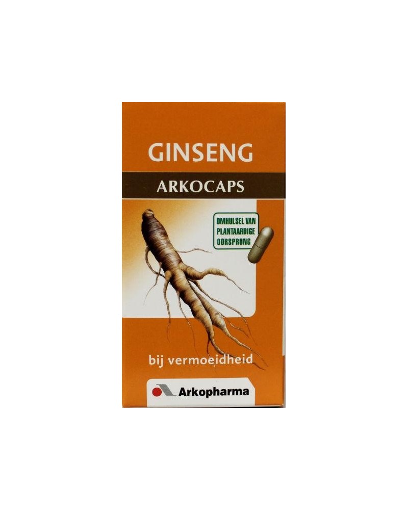 Poeder (integraal totum) van BIO Ginsengwortel (Panax ginseng), capsule 100% plantaardig: hydroxypropylmethylcellulose.