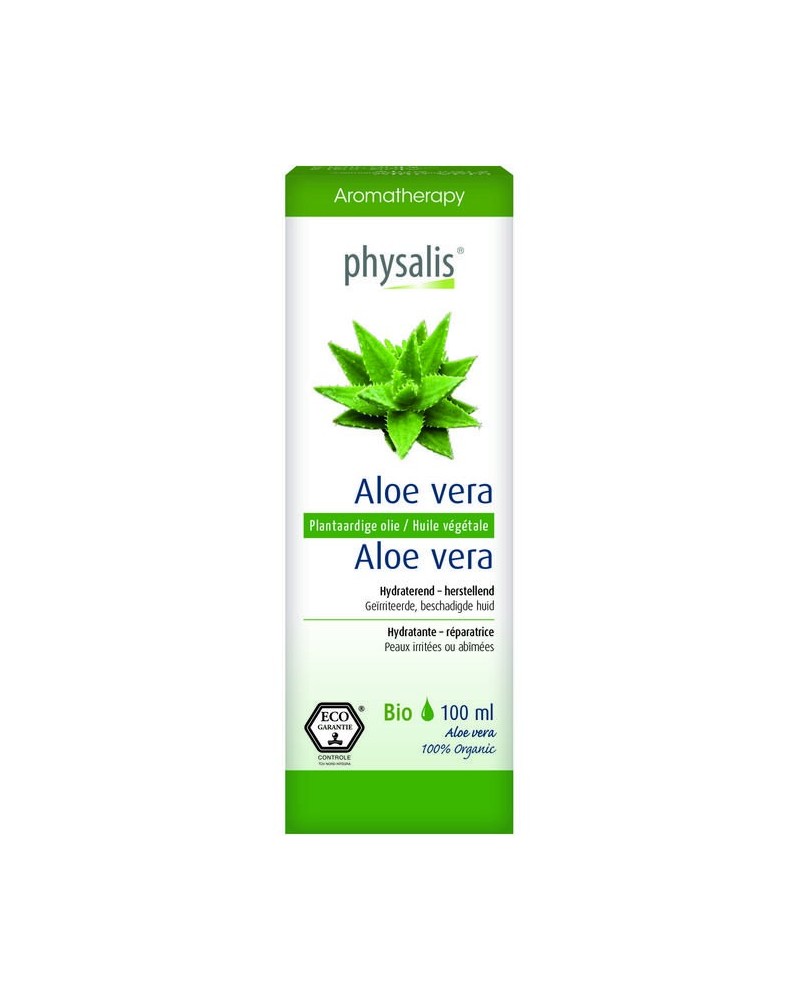 Physalis bio aloe vera-olie is een erg mild lichtgeel oliemaceraat van het binnenste van Aloe vera bladeren.