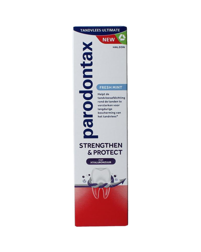 VERSTERKT TANDVLEES: parodontax Strenghten & Protect versterkt door tandplakbacteriën langs de tandvleesrand te verminderen voor een sterkere en strakkere afdichting tussen tandvlees en tanden