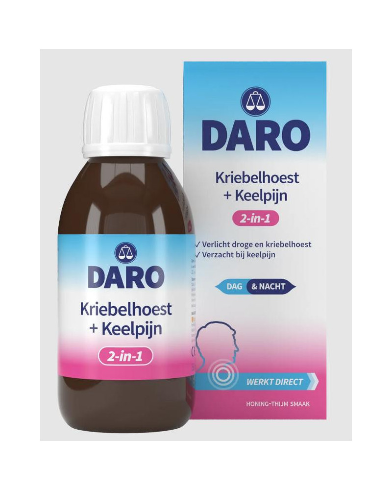 Daro 2-in-1 Kriebelhoest + Keelpijn behandelt de symptomen van droge/ kriebelhoest en keelpijn