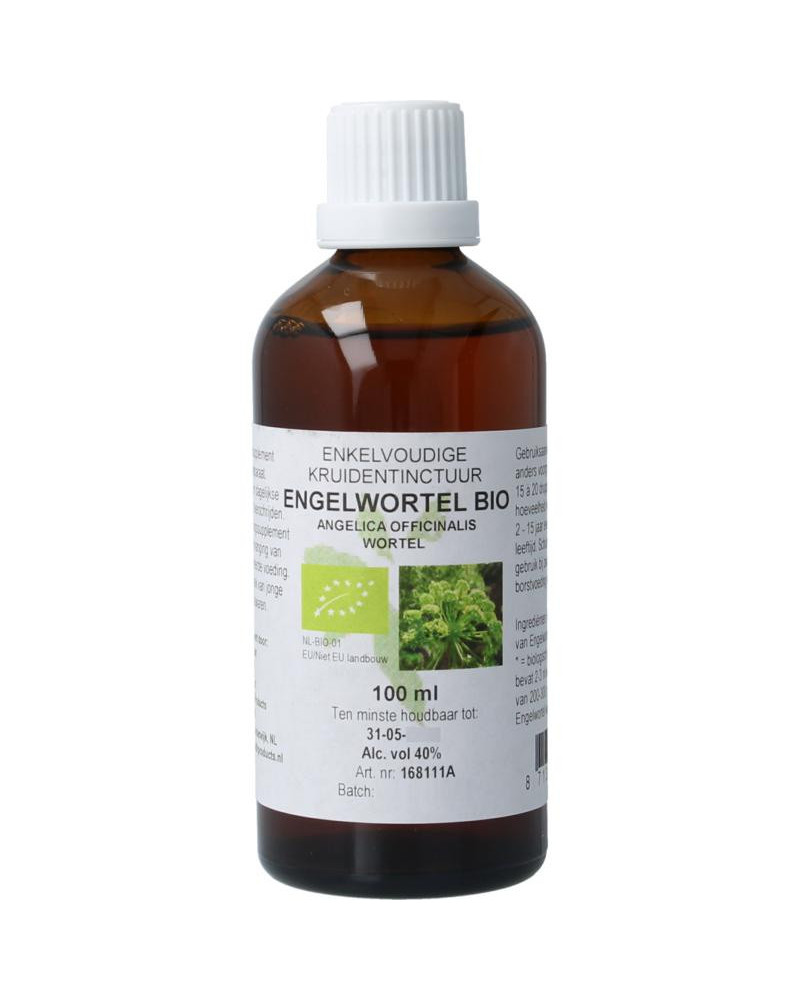 Enkelvoudige kruidentinctuur gemaakt met 100 gram gedroogde wortels van Angelica officinalis / Engelwortel.