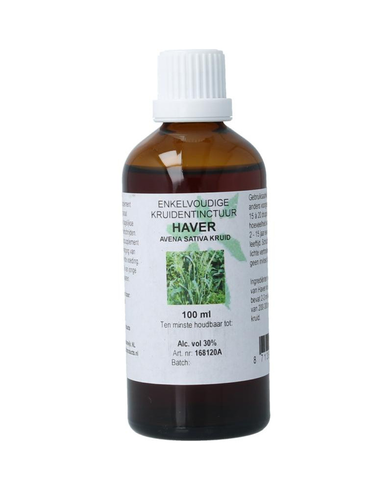 Enkelvoudige kruidentinctuur gemaakt met 100 gram gedroogd kruid van Avena sativa / Haver.
