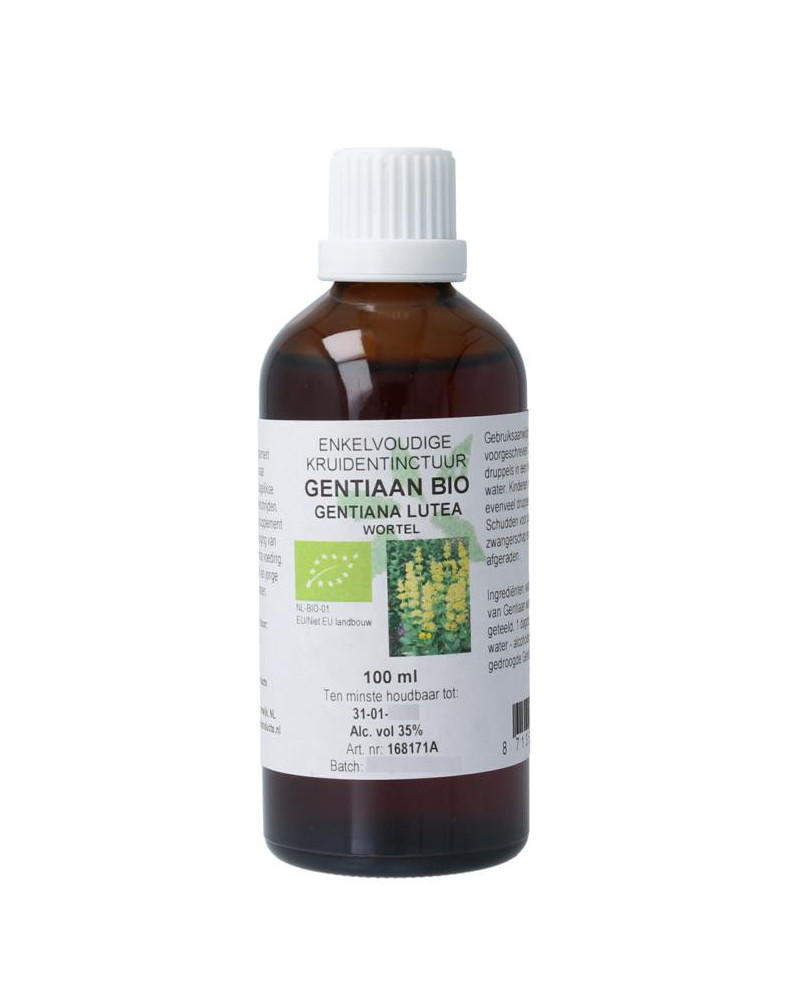 Enkelvoudige kruidentinctuur gemaakt met 100 gram gedroogde wortels van Gentiana lutea / Gentiaan.