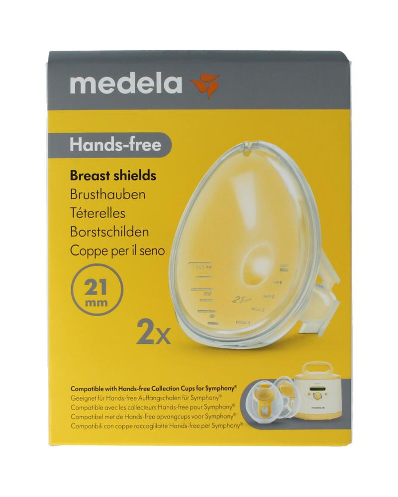 Authentieke kolfaccessoires van Medela: Medela biedt vervangende borstschilden in drie maten aan die zijn getest en ontworpen voor gebruik met de Medela Hands-free opvangcups die nu verkrijgbaar zijn met de FreestyleTM Hands-free borstkolf.