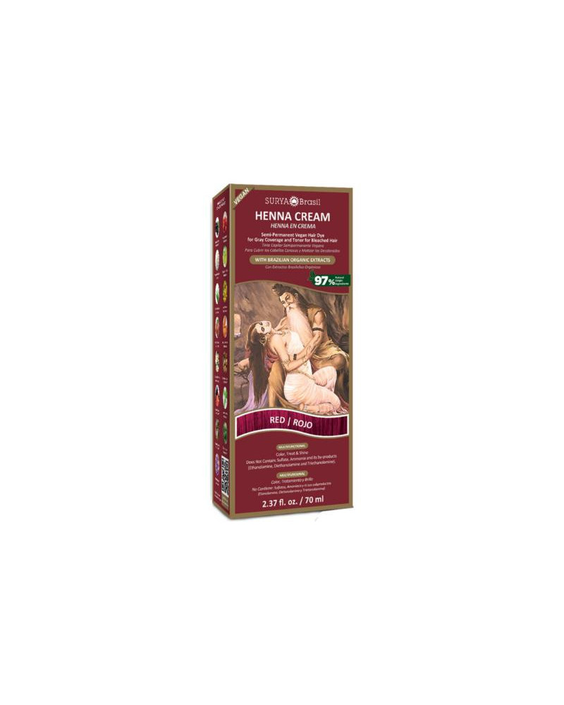 Ontdek de kracht van de natuur met de Surya Brasil Henna Haarverf Cream Red. Deze haarverf is een van de meest natuurlijke opties op de markt en biedt een uitstekende prestatie. Met een unieke mix van ingrediënten uit India en het Amazonegebied, is deze henna cream speciaal samengesteld om je haar te verzorgen en te hydrateren. De formule, die bestaat uit 15 plantaardige en biologische extracten, zorgt ervoor dat je haar zachter en zijdezacht aanvoelt. Bovendien is het dermatologisch getest, wat betekent dat je met een gerust hart kunt genieten van een prachtige haarkleur.