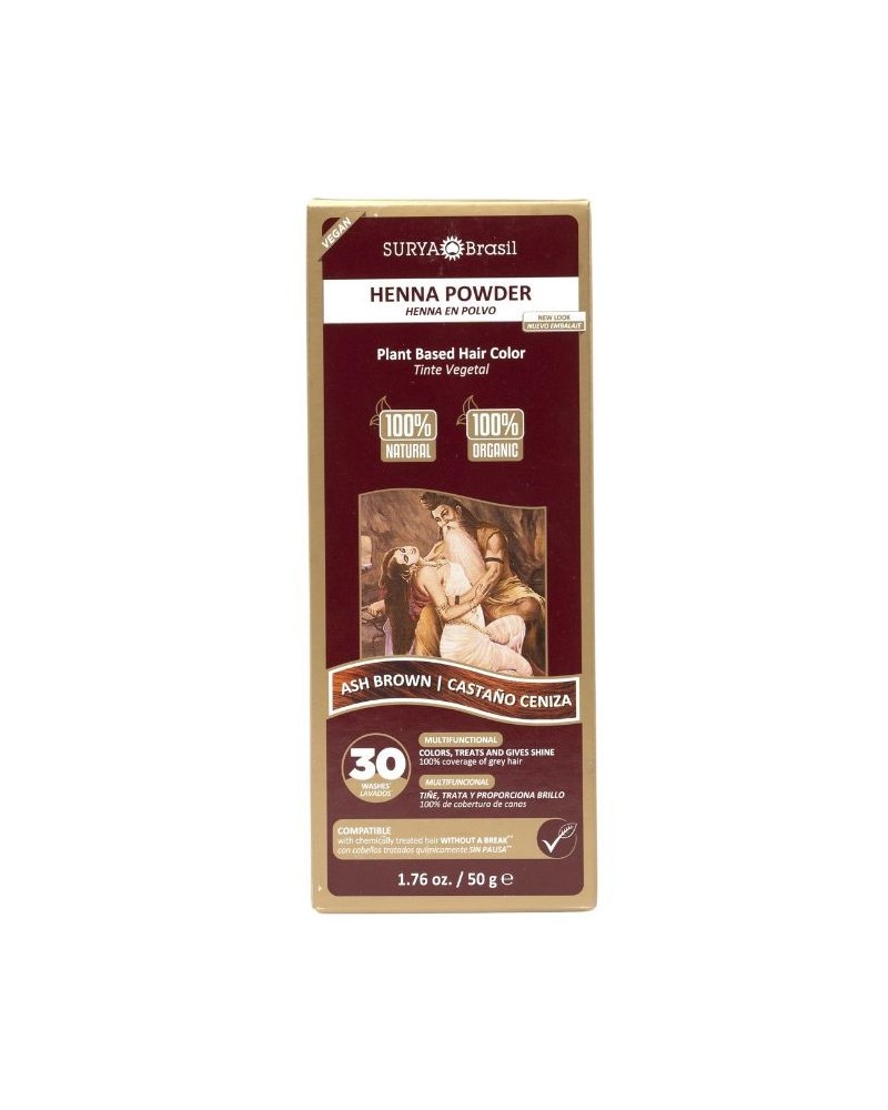 Ontdek de kracht van de natuur met de Surya Brasil Henna Haarverf Powder in de kleur Ash Brown. Deze semi-permanente haarverf is ontwikkeld met 100% natuurlijke en plantaardige ingrediënten, rechtstreeks afkomstig van planten en gedroogde kruiden uit India. Deze unieke formule kleurt niet alleen je haar, maar herstelt, voedt en behandelt het ook. Zelfs witte haren worden effectief gedekt. Of je nu al chemische behandelingen zoals verven, stijlen of highlights hebt gehad, deze henna past zich moeiteloos aan jouw haarroutine aan.
