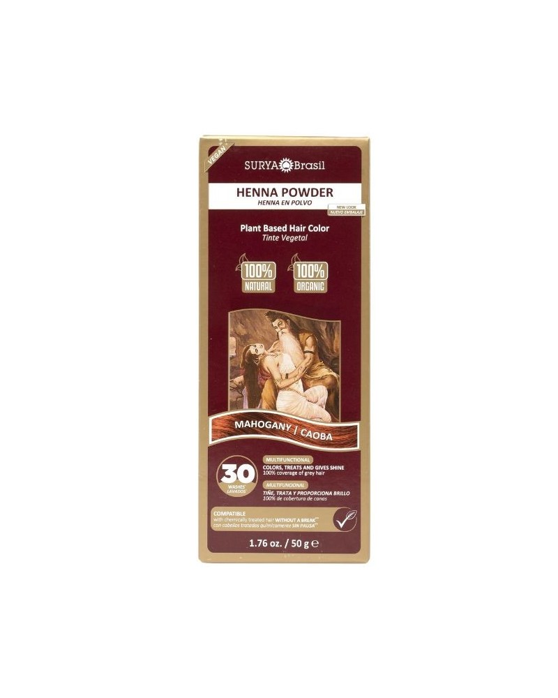 Met Surya Brasil Henna Haarverf Powder Mahogany kies je voor een natuurlijke en effectieve manier om je haar te kleuren en te verzorgen. De zorgvuldig samengestelde formule zorgt voor een gezonde uitstraling en versterkt de haarstructuur. Ervaar de voordelen van een product dat zowel je haar als de natuur respecteert. Voeg deze henna poeder toe aan je routine en geniet van de rijke, natuurlijke kleur en de verzorgende eigenschappen die het biedt.