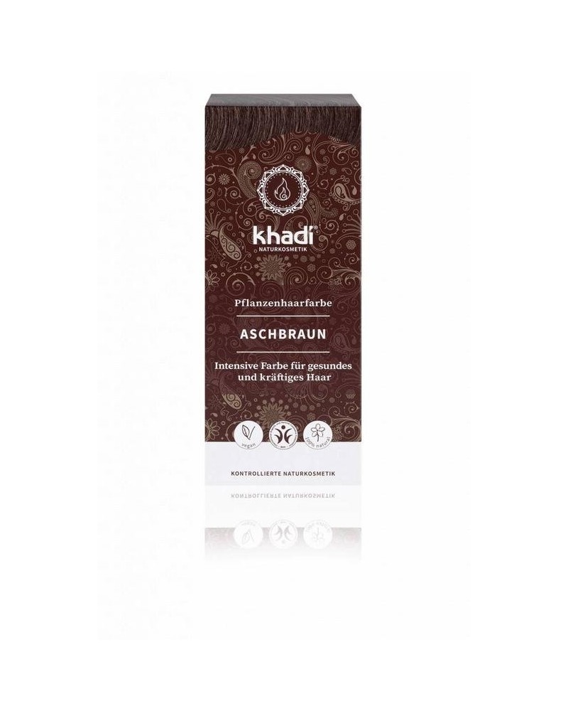 Plantaardige asbruine henna haarverfpoeder dat een koele asbruine kleuring geeft aan donkerblond tot donkerbruin haar. Niet geschikt voor direct gebruik op grijs of blond haar, in dat geval eerst voorkleuren met Khadi Goudgloed!