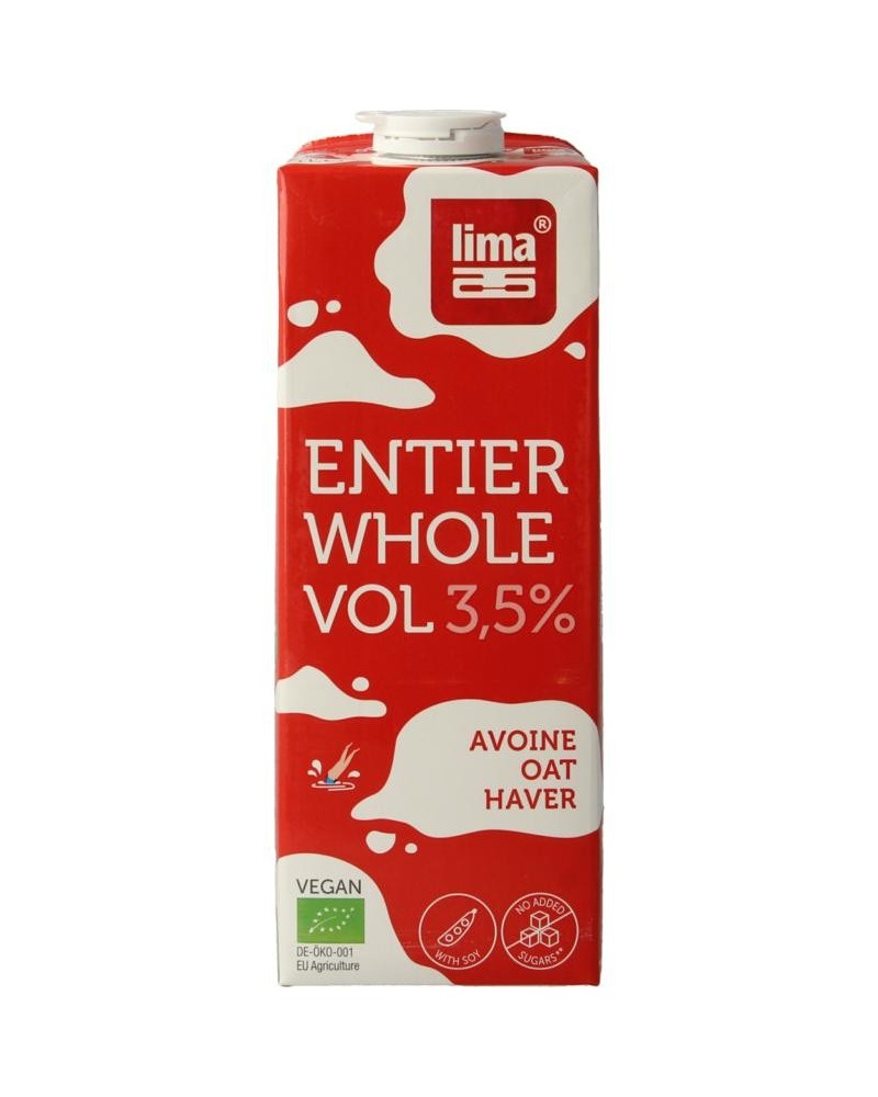 Water, volkoren HAVER* (GLUTEN) 5,5%, SOJA-bonen* 3%, zonnebloemolie*, stabilisator: gellangom, maltodextrine*, zeezout, natuurlijk melasses aroma.