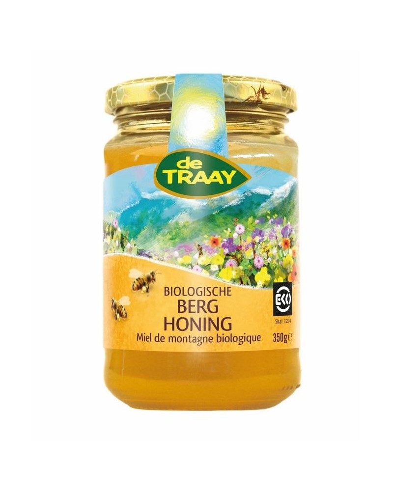 De Traay Biologische Berghoning wordt geoogst op een minimale hoogte van 800mtr. dit is de eis om het berghoning te mogen noemen en geeft daardoor ook een mooie volle rijke smaak aan de honing.