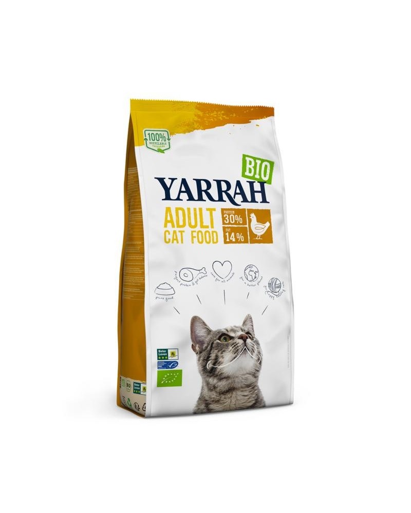 Krokante brokjes met biologische kip en erwten voor volwassen katten. Het biologische kattenvoer vormt een complete, voedzame en zeer smakelijke maaltijd voor je kat. Zuiver biologisch voer en dus zonder toegevoegde chemische geur-, kleur- en smaakstoffen, pesticiden en GMO, waarbij de best opneembare eiwitten zijn geselecteerd. Zo krijgt je kat precies binnen wat hij nodig heeft.
