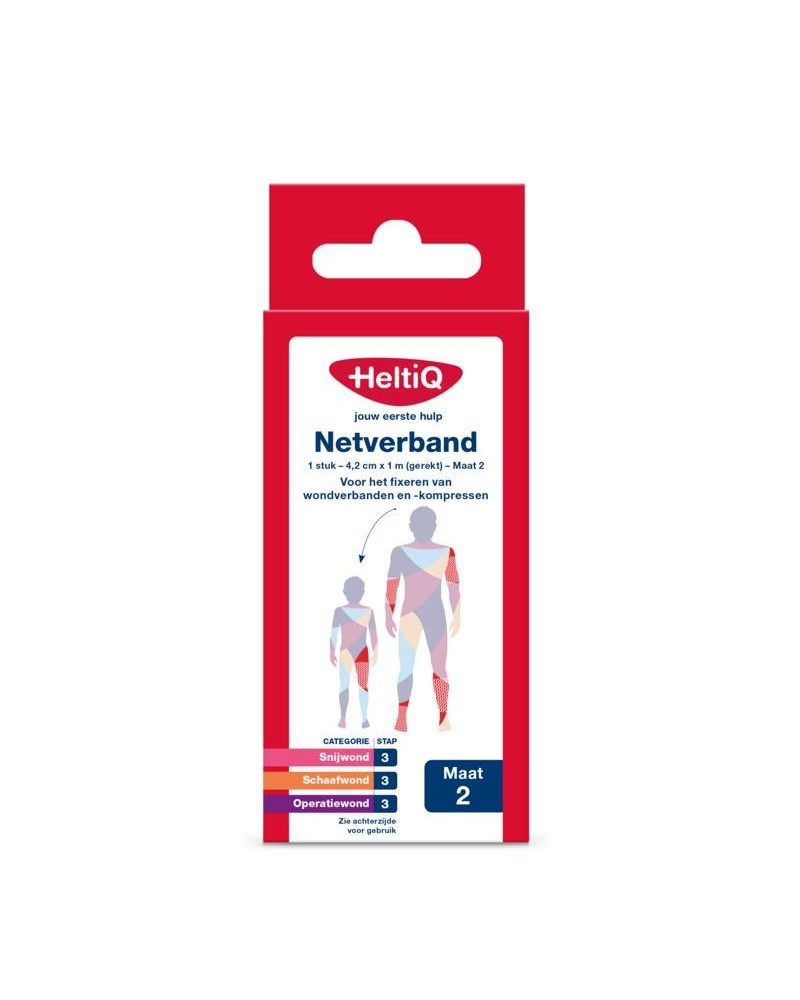 HeltiQ Netverband is een zeer elastisch verband waarmee je op eenvoudige wijze een wondverband of -kompres op zijn plek houdt. Door zijn elasticiteit en wendbaarheid past het netverband zich aan iedere lichaamsvorm aan. Er zijn bij gebruik van een netverband geen hechtpleisters of andere fixatiemiddelen benodigd. Dit maakt de wondinspectie of het verwisselen van een wondverband of -kompres eenvoudig. HeltiQ Netverband is geschikt om te gebruiken voor moeilijk te verbinden lichaamsdelen.