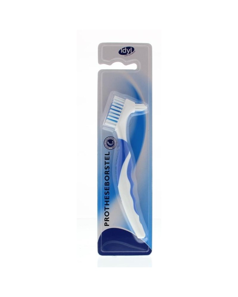 Idyl protheseborstel is ontwikkeld voor het eenvoudig en grondig reinigingen van een kunstgebit of gebitsprothese. Het speciale handvat zorgt voor een extra goede grip. De grote borstelkop is voor de reiniging van grote oppervlaktes. Met de kleine borstelkop kunnen de moeilijk bereikbare plekken worden gereinigd. de borstelharen van de idyl protheseborstel zijn van goede kwaliteit.