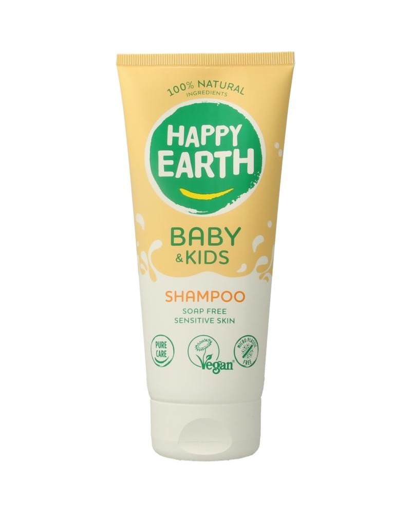 Happy Earth shampoo voor Baby & Kids bevat alleen 100% natuurlijke ingrediënten die zijn gecertificeerd door Natrue. Daarnaast bevat de shampoo 0% SLS/SLES en is deze zeepvrij, zodat je zeker weet dat je geen schadelijke producten aanbrengt op de huid van jouw baby. De shampoo is extra mild en verzorgend voor de gevoelige huid van baby’s en kinderen en is direct te gebruiken vanaf de geboorte. De shampoo heeft een heerlijk, allergeenvrijparfum en is biologisch afbreekbaar. Na gebruik van de shampoo zijn de haren van je baby zacht, makkelijk doorkambaar en ruiken heerlijk.