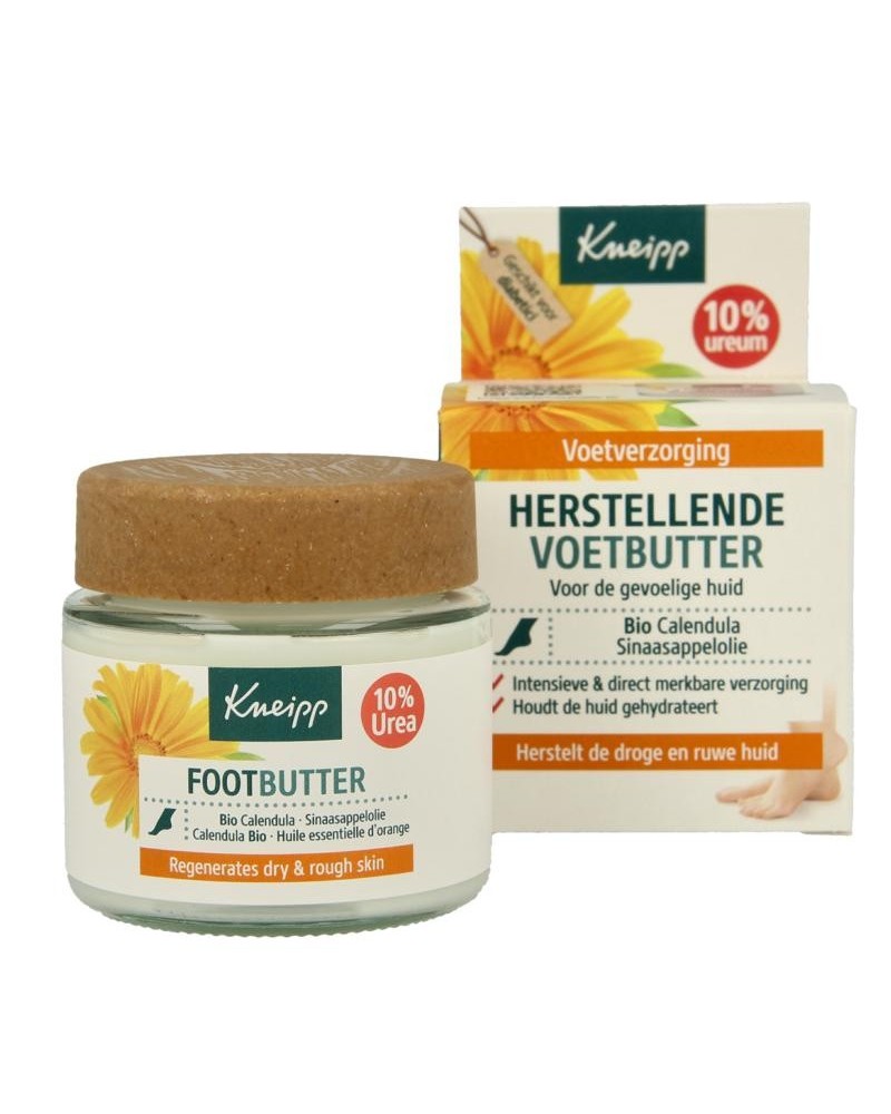 Verwen je droge en overbelaste voeten met de rijke Kneipp voetbutter en ze worden zacht en soepel. De combinatie van waardevolle verzorgende werkstoffen bevat 10% ureum voor een hydraterend effect. Kalmerende panthenol en celbeschermende vitamine E complementeren de verzorgende formule. Deze foot butter helpt voetschimmel voorkomen. Calendula-extract is geschikt voor herstel en verzorging van de voeten.