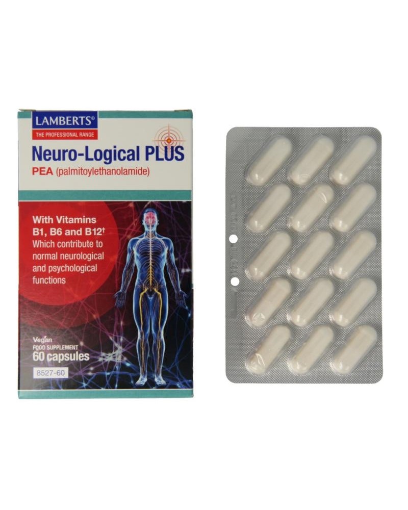 OptiPEA® (palmitoylethanlamide), Capsule (hydroxypropyl methylcellulose), Vulmiddel (cellulose), Antiklontermiddelen (magnesiumzouten van vetzuren), Thiamine hydrochloride, Vitamine B6 (pyridoxine hydrochloride), Vitamine B12 (cyanocobalamine).