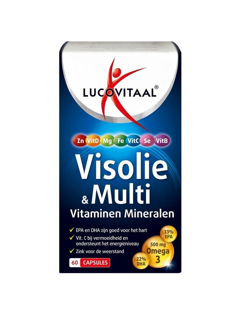 Lucovitaal Visolie & Multi bevat een hoge dosering aan Omega-3 vetzuren (EPA en DHA). Bovendien is deze formule verrijkt met een scala aan vitaminen en mineralen.