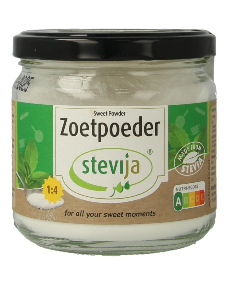 Stevia Zoetpoeder is steviolglycosiden* (*extract uit de stevia plant) verrijkt met inuline, een makkelijk oplosbare vezel die van nature voorkomt in cichorei, agave, fruit en groenten. Dankzij de toevoeging van inuline is dit zoetpoeder een perfect alternatief voor poedersuiker, met maar liefst 90% vezels. Deze vezels dragen bij aan een gezonde darmflora. Bovendien is Stevia Zoetpoeder eenvoudig te doseren: één kwart theelepel staat gelijk aan één theelepel suiker. Tijdens het bakken komt de zoete kracht van stevia in Stevia Zoetpoeder nog beter tot uiting, waardoor je er zuinig mee kunt omgaan. Een potje Stevia Zoetpoeder is voldoende voor het bakken van zo'n 10 cakes.