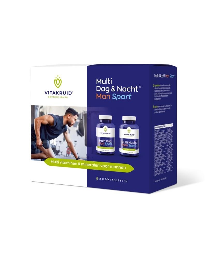Na een sportieve dag voorziet de Multi Nacht Sport Man in aanvullende ondersteuning voor je leefstijl. Belangrijke voedingsstoffen in de nachtformule zijn de vetoplosbare vitaminen (A, D, E, K) en de mineralen zink en selenium. Bovendien zijn gemberwortel en passiebloem onmisbaar in de nachtvariant.