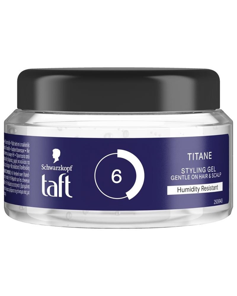 Altijd in controle met Taft! Taft Titane Styling Gel is vochtbestendig. Het geeft je haar een titanium-sterke hold en plakt niet. Deze gel is gemakkelijk uit te wassen en is vrij van alcohol (ethylalcohol). Deze gel is zacht voor haar en hoofdhuid en bevat hydraterende panthenol. Alle Taft formules zijn vegan* en PETA gecertificeerd**.