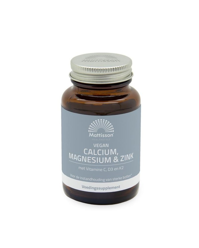 Microkristallijne cellulose (vulstof), Calcium citraat, Magnesium bisglycinaat, CMS-Na (verdikkingsmiddel), magnesium stearaat (anti-klontermiddel), Ascorbinezuur (Vitamine C), Zink bisglycinaat, Cholecalciferol (Vitamine D3), Bioperine® (Piper nigrum L. extract), Menaquinone-7 (Vitamine K2), cellulose (glansmiddel), ijzeroxide (coating)