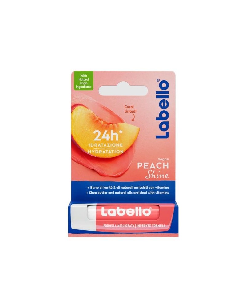 Deze VEGAN Labello Peach Shine met zijn natuurlijke oorsprong en effectieve ingrediënten geeft je een heerlijk perzikaroma en een subtiele koraalglans. De unieke formule met uitsluitend ingrediënten van NATUURLIJKE oorsprong en zonder dierlijke ingrediënten, zoals de ethisch geproduceerde sheaboter, oliën en vitamines smelt op je lippen en houdt ze meer dan 24 uur gehydrateerd. Het beschermt je lippen tegen kou, wind en droge lucht. Deze fruitige Peach Labello bestaat voor > 99% uit natuurlijke ingrediënten! Het glijdt gelijkmatig en gemakkelijk over de lippen zodat je geen spiegel nodig hebt! Voor een mooie glanzende kleur en zachte, kusbare lippen - de hele dag door, elke dag! De huidverdraagzaamheid van deze verzorgende lippenbalsem is dermatologisch goedgekeurd - klinisch getest!